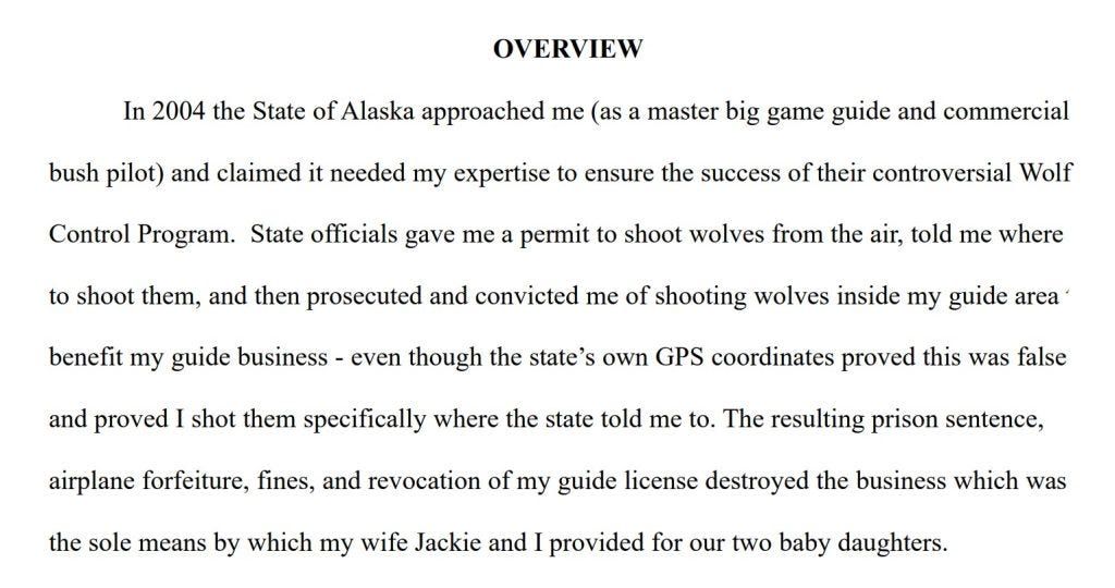 In court filings January 15, 2020 Haeg declares he was framed by the Alaska Department of Fish and Game and Presiding Superior Court Judge Margaret Murphy. (3KN-10-01295)