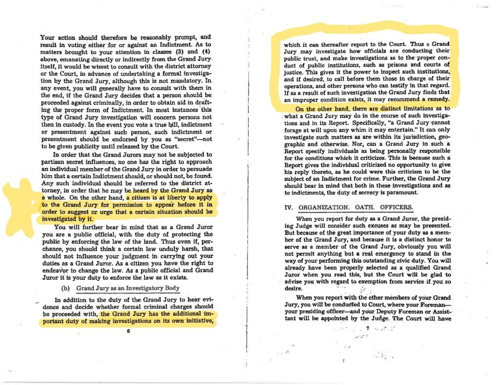 Before SCO 1993, the State’s Grand Jury Handbooks throughout its history designated that a person can go “directly” to the grand jury to provide evidence in the interest of public welfare and safety. The State has now claimed the law never allowed for citizens to go “directly” to the grand jury.