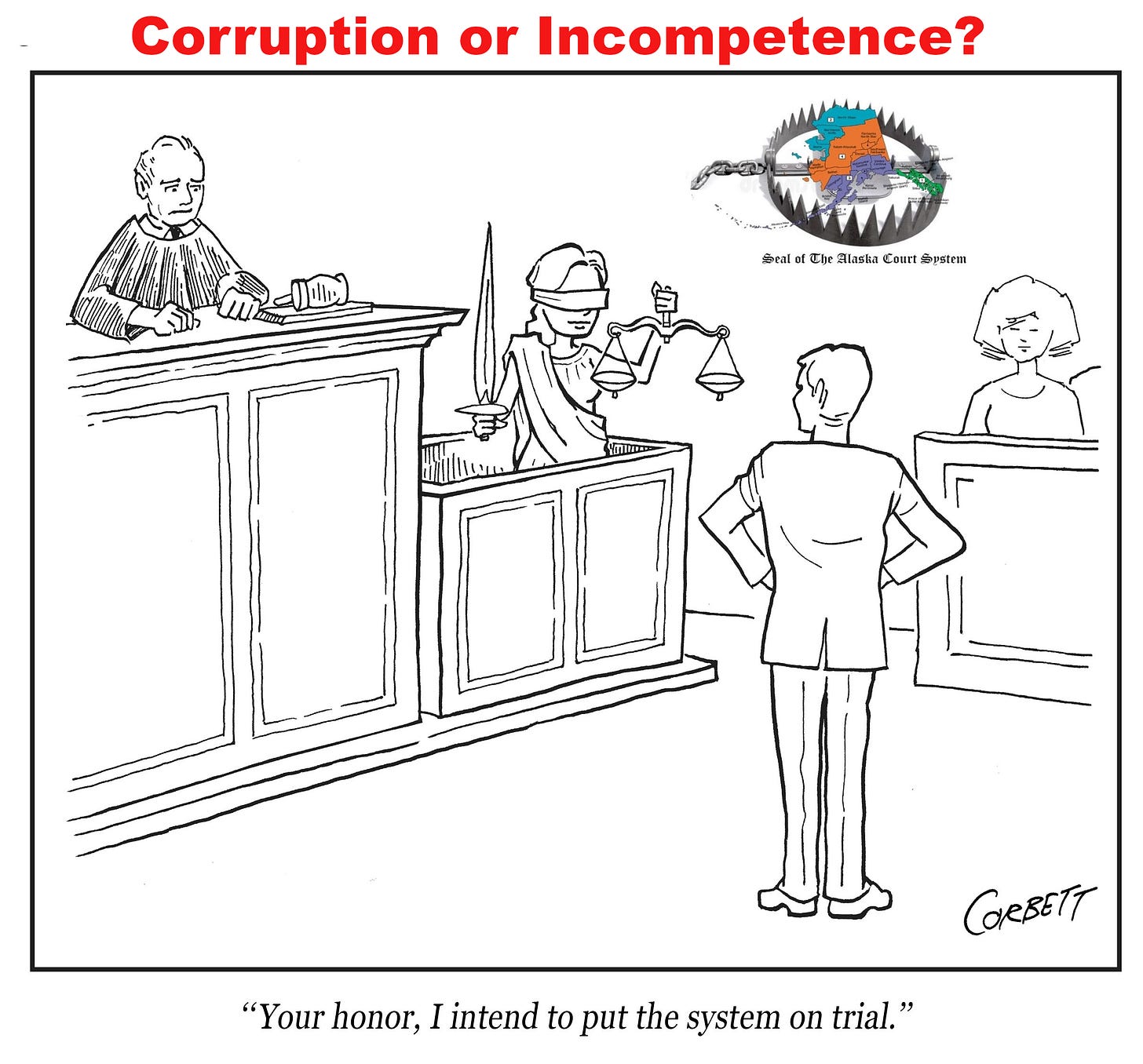 AK Judges hate citizens who are innocent and unwilling to hire a member of the Alaska Bar Association cartel in a court system expected to dispense justice.