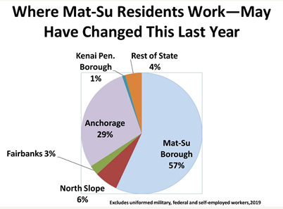 According to statistics from AKLWD, nearly 60 percent of Alaskans who live in the MatSu Valley also work at jobs there, with 30 percent of valley residents working in Anchorage. This writer has driven this commute going the opposite direction of Valley-to-Anchorage cars during rush hours over more than four years. In mornings and evenings I saw a steady and continuous line of traffic.