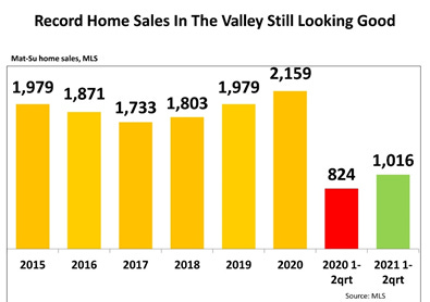 One indicator of the strong MatSu Valley economic position is home sales. The first two quarters of 2021 are already approaching the record high levels of 2020.