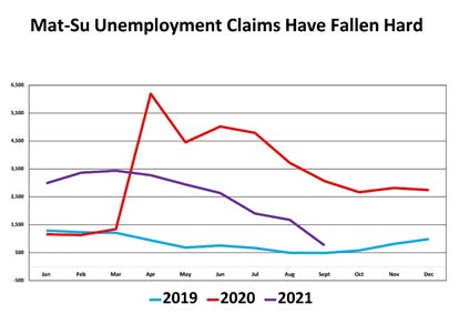 The profile of where Mat-Valley residents work has not changed much over last year’s AKLWD findings, but unemployment claims have declined.