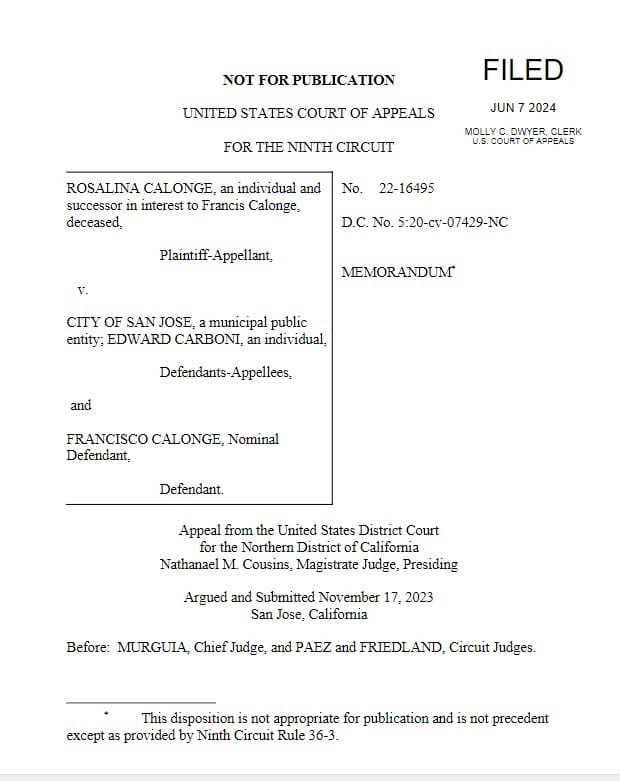 [7] ROSALINA CALONGE V. CITY OF SAN JOSE, ET AL, No. 22-16495 (9th Cir. 2024)