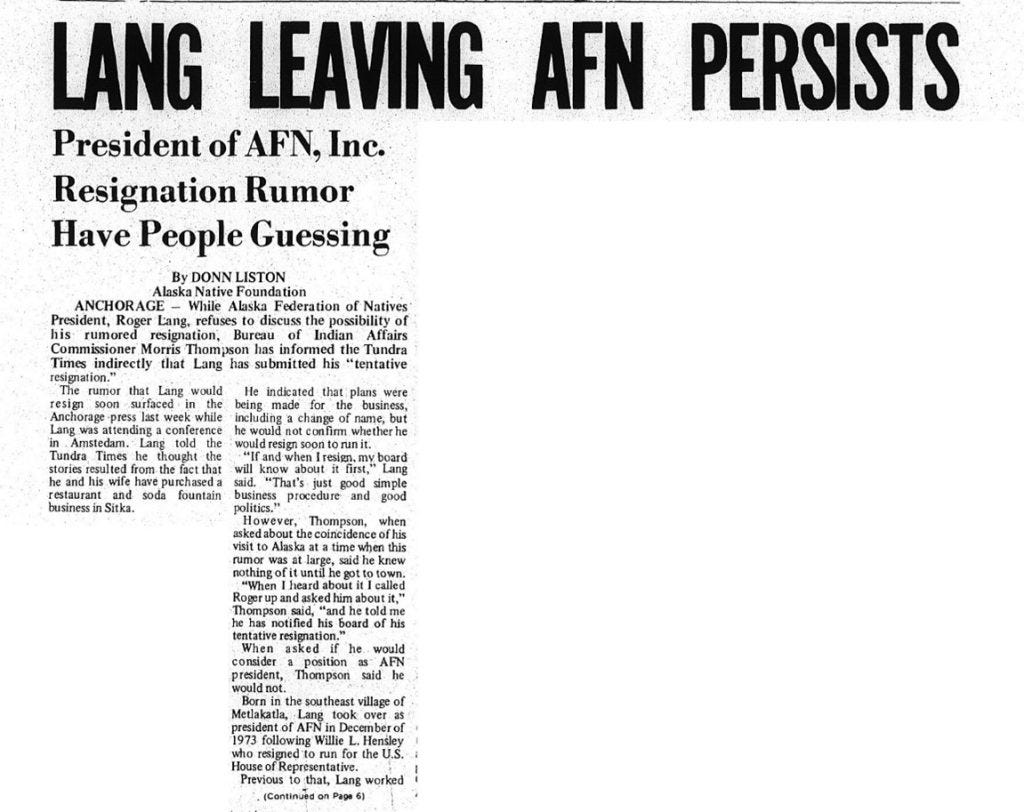 As an idealistic young man I soon learned Native politics are not where a white boy with no family ties to that community should meddle. I have avoided writing about Alaska Native issues since the crisis I created for myself—telling a story Alaska Native leaders didn’t want known. The Tundra Times scoop I got from a question answered by BIA Commissioner in Washington D.C., Morris Thompson—about whether the AFN Board was firing its president, Roger Lang—got ME fired! It didn’t matter that the story was true, Perry Eaton was offended and fired me.