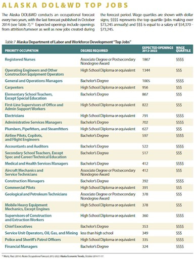 Alaska’s economy is very specific about what human resources it needs. To be successful in this job market, training after receiving a high school diploma or GED must consider what have been identified as in-demand priority occupations.