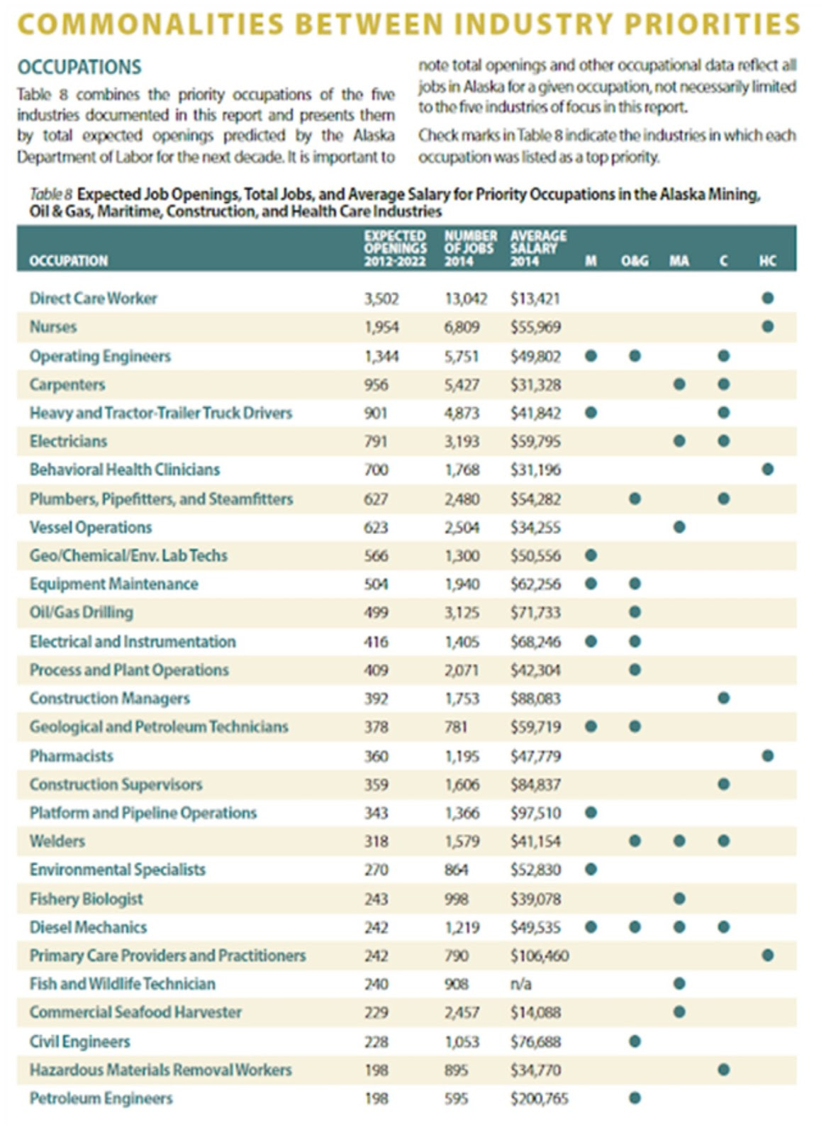 Certain Alaska industries have been identified as Priority Industries because they are thriving in Alaska and need employees in identified Priority Occupations. Reliance on nonresident workers in priority industries and in-demand occupations was explored in a 2016 study by The McDowel Group, entitled: titled Cross-Industry Workforce Development Priorities.