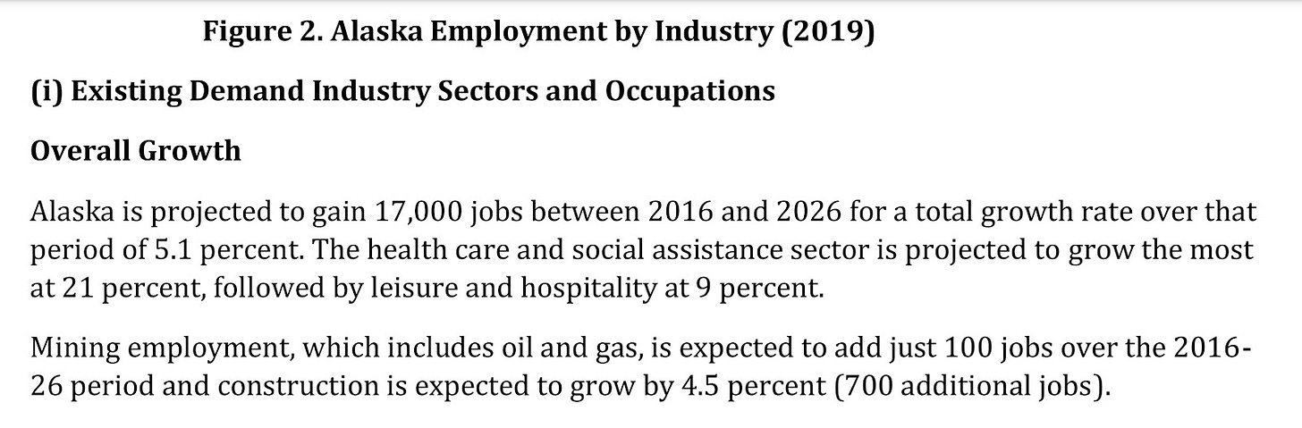 This information over the last five years has been disrupted by an international pandemic but as we in Alaska recover our economic vitality the need for trained employees will increase. By looking at what potential jobs will be needed perhaps more Alaskans who wish to stay and participate in the economy will be able to do so.