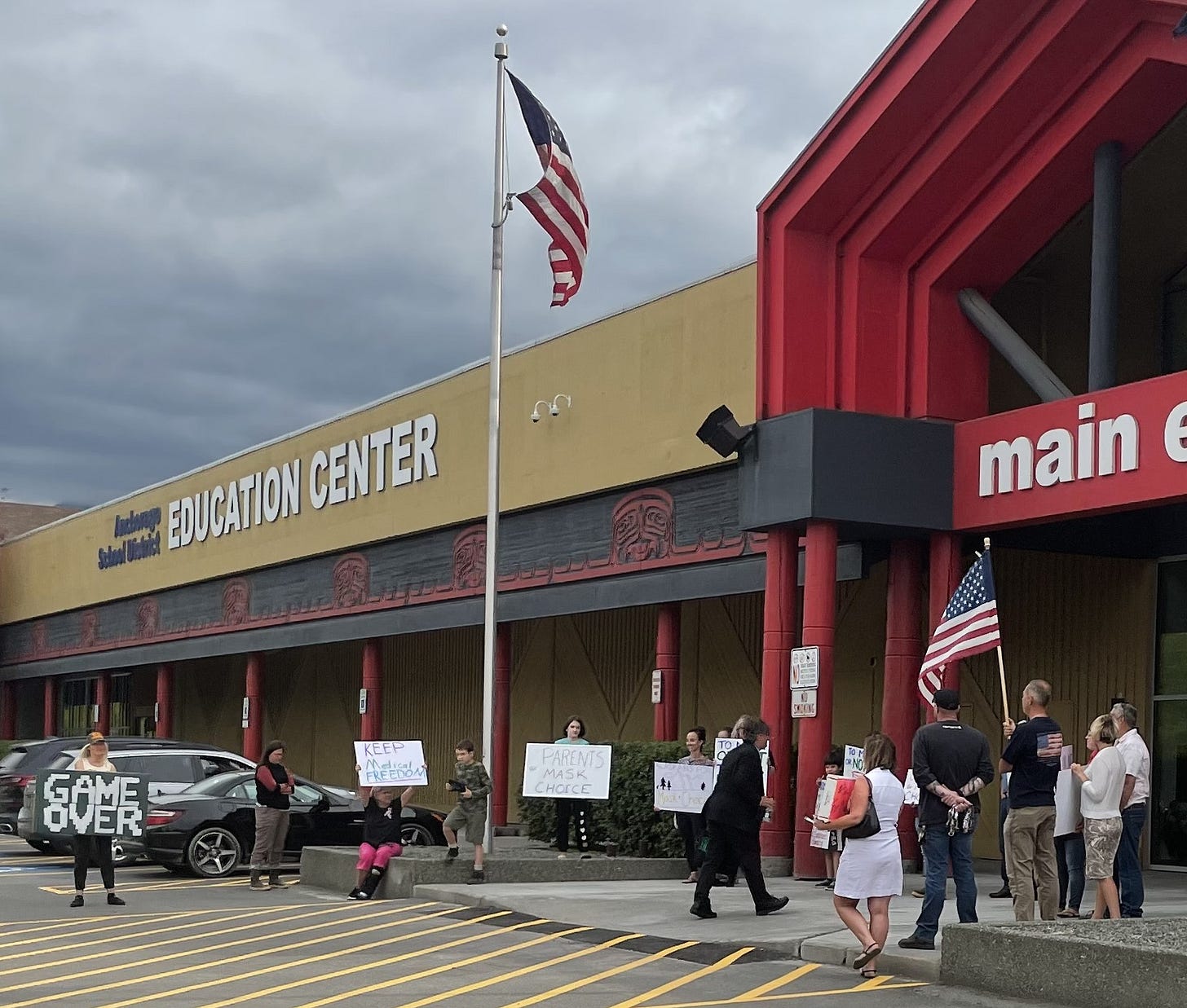 On very short notice the plan was to have parents paint their cars with the message of Mask Choice and arrive at the ASD Central Office to welcome participants in the workshop prior to the meeting to consider mask policy for the coming school year. The board allowed the policy declaration by Bishop to