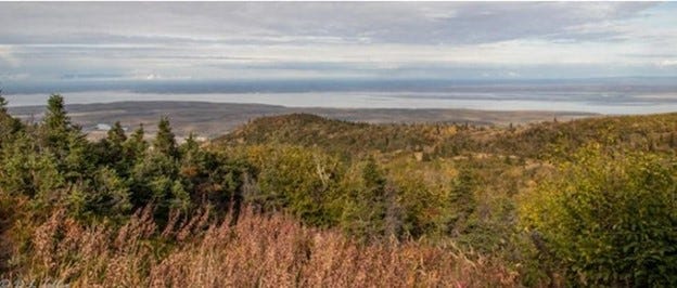 Expansive view of Knik Arm from Mt. Baldy in Eagle River as it feeds into Cook Inlet.