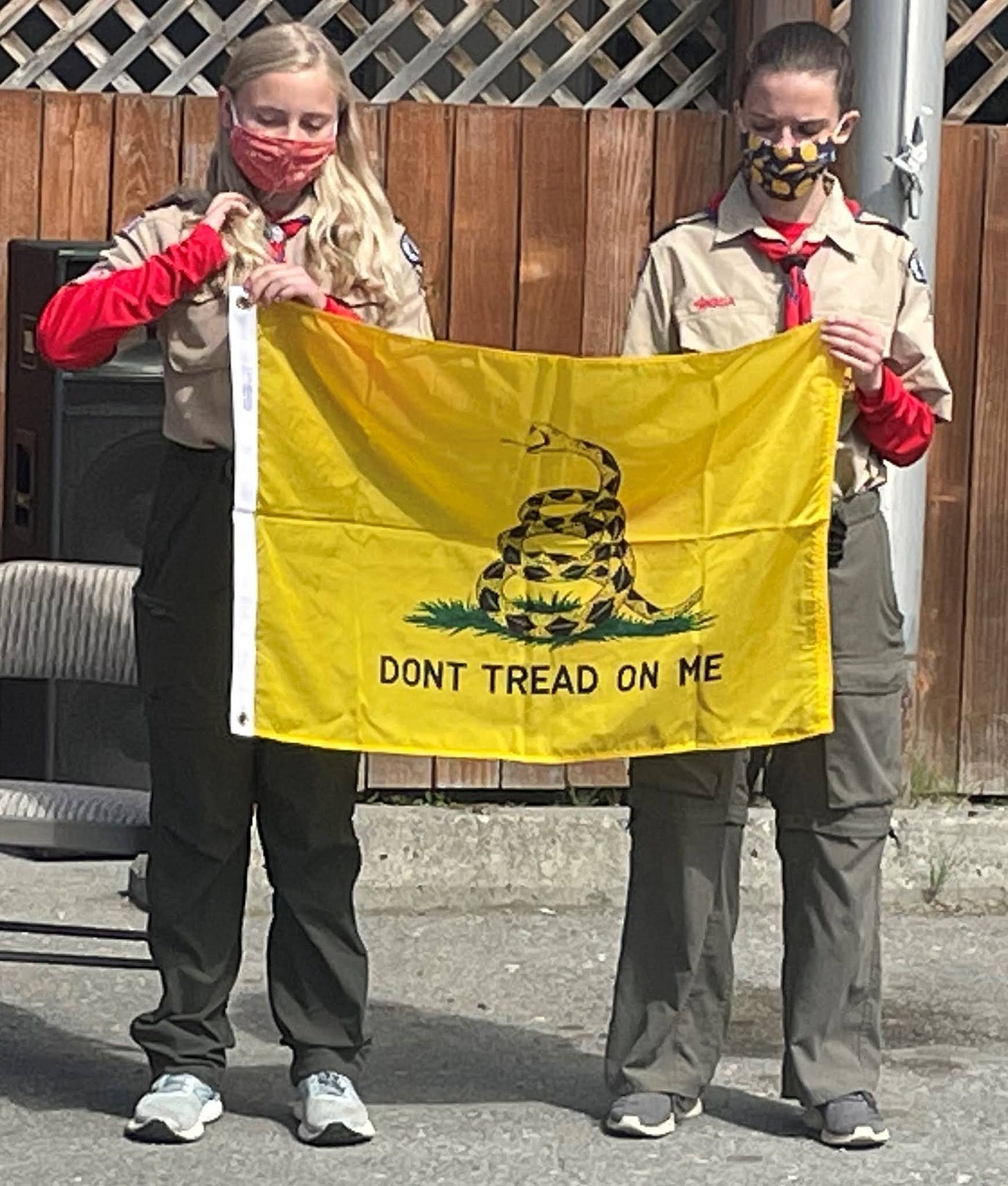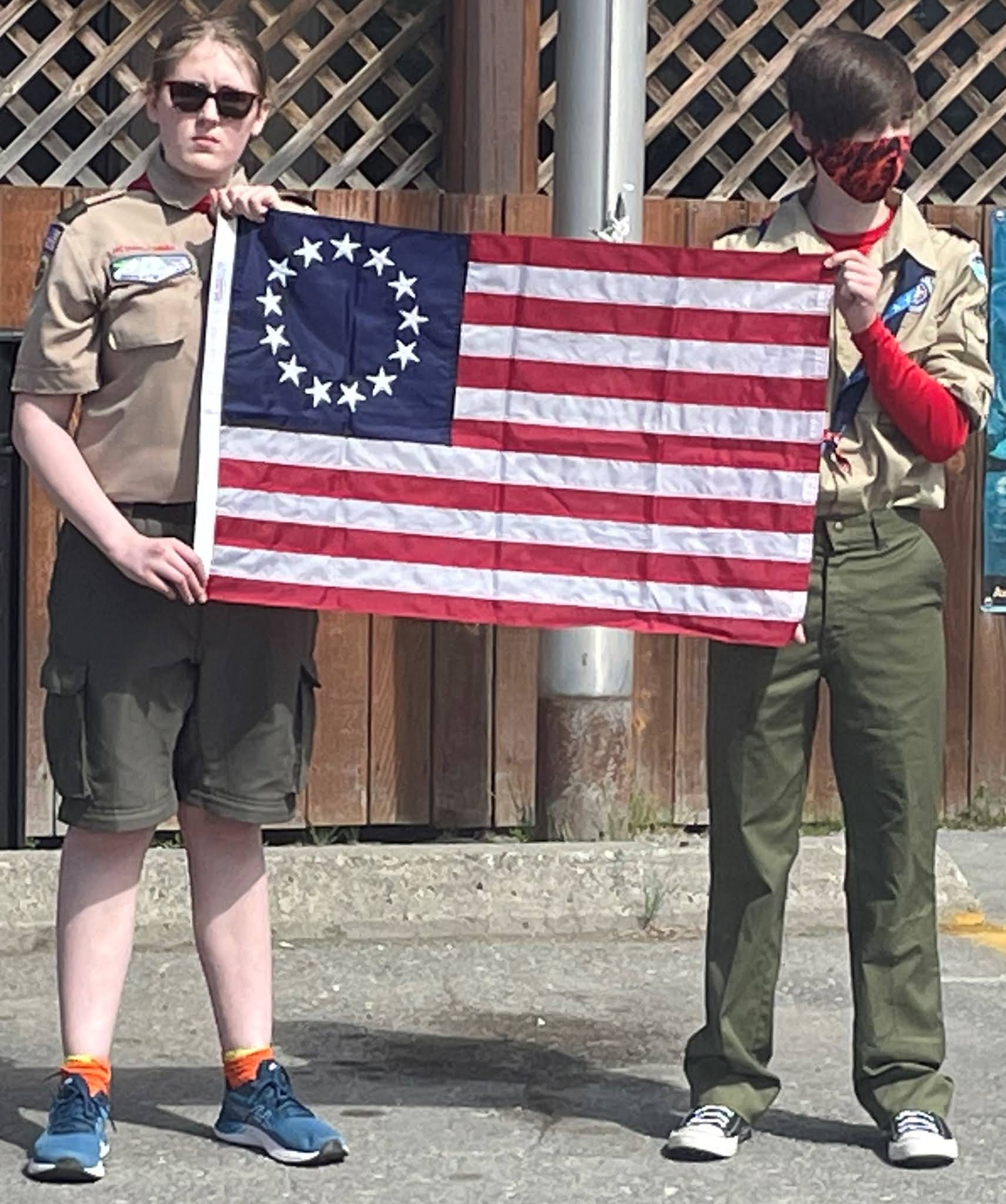 Local Scouts brought examples of each flag as it was explained by the speaker at the ceremony.
