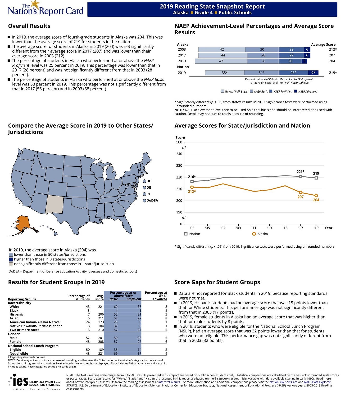 Third grade is a pivotal time in the education of children. Alaska is among the lowest 4th Grade reading scores in the United States.
