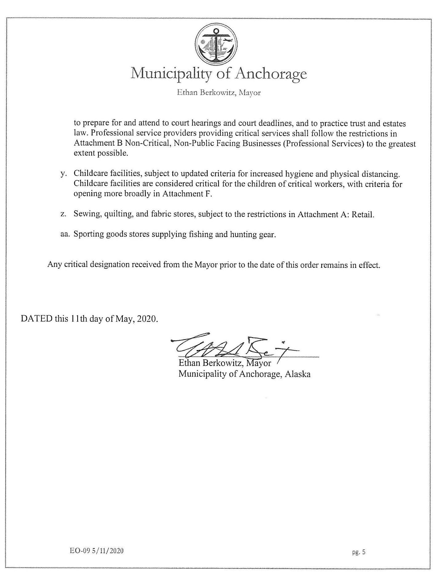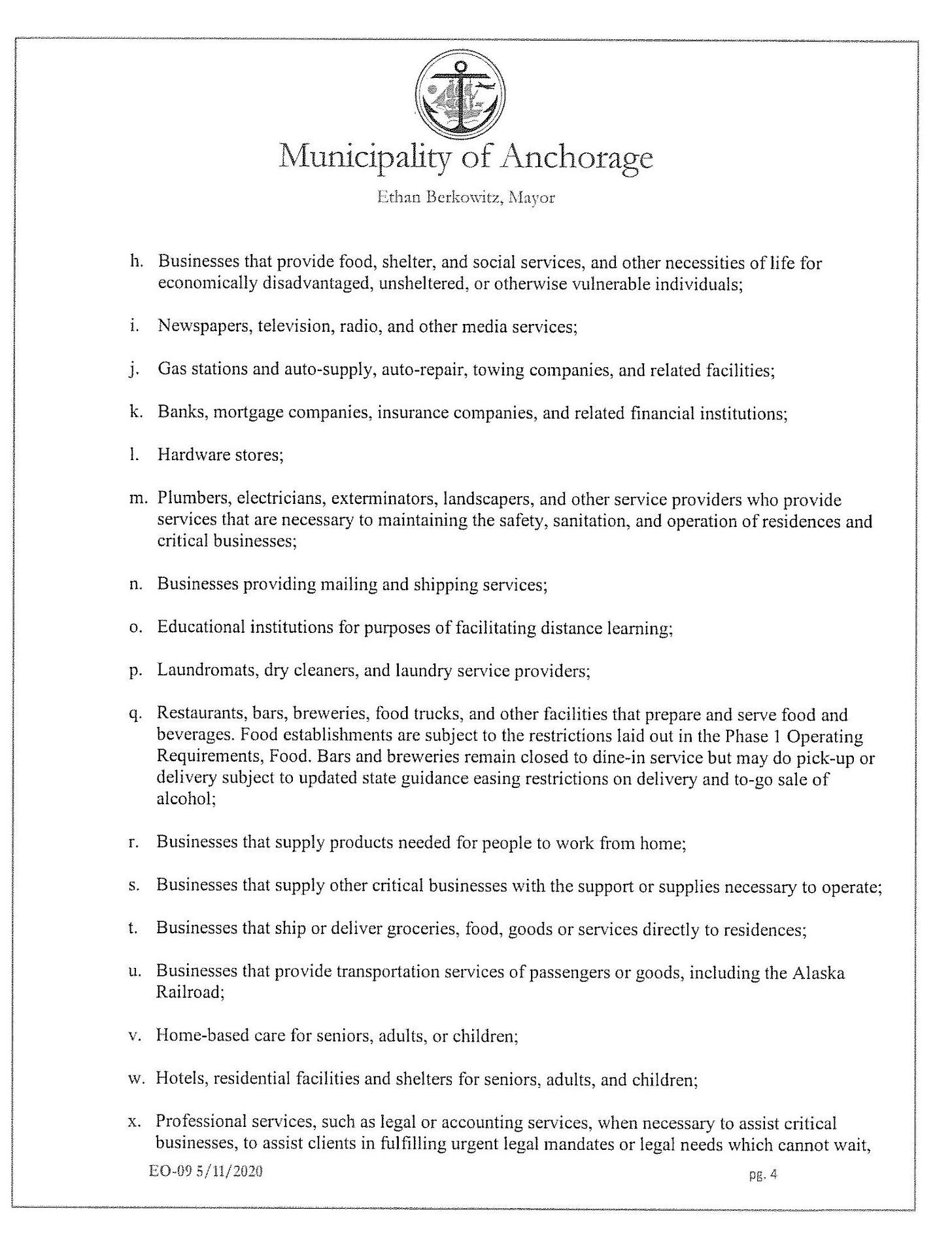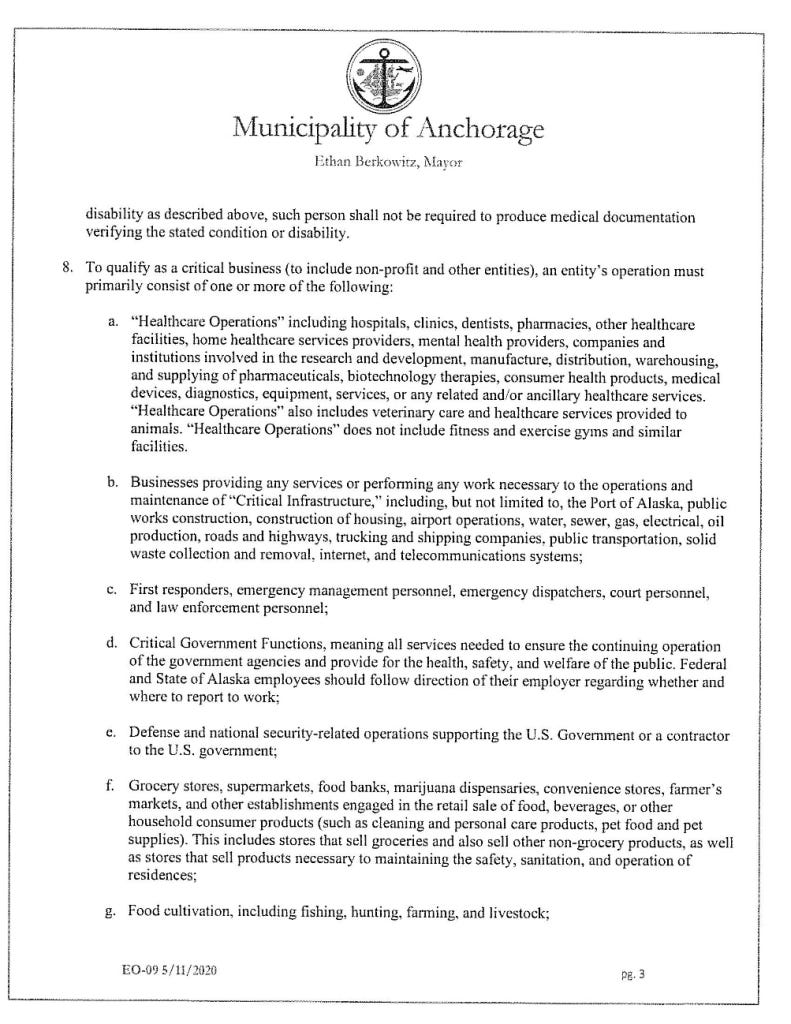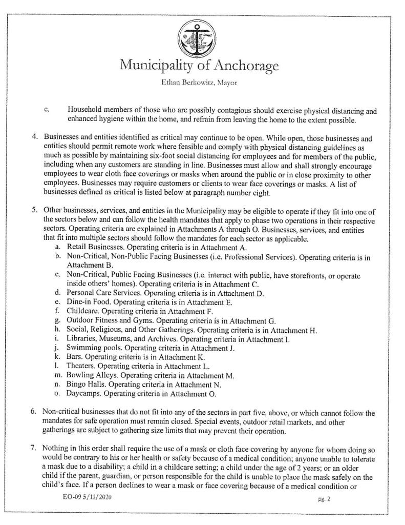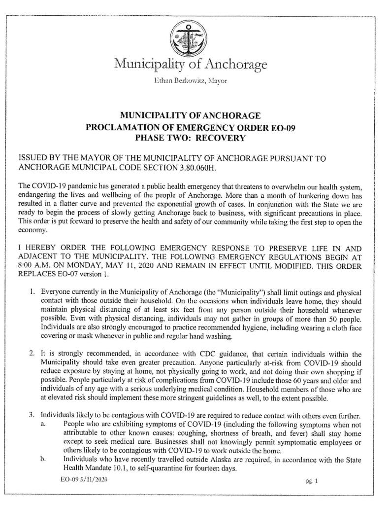 [11] Municipality of Anchorage, Proclamation of Emergency Order 09, May 11, 2020