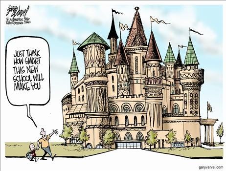 Our system is more about wealth distribution than about education. Every local school board is like a little bird in a nest with its mouth open.