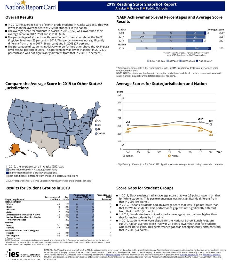 Alaska’s Standing in Grade 8 Reading:
