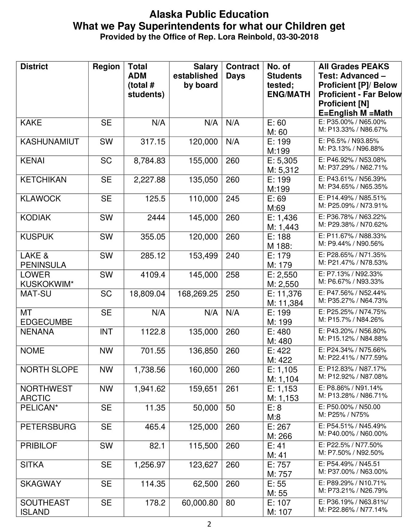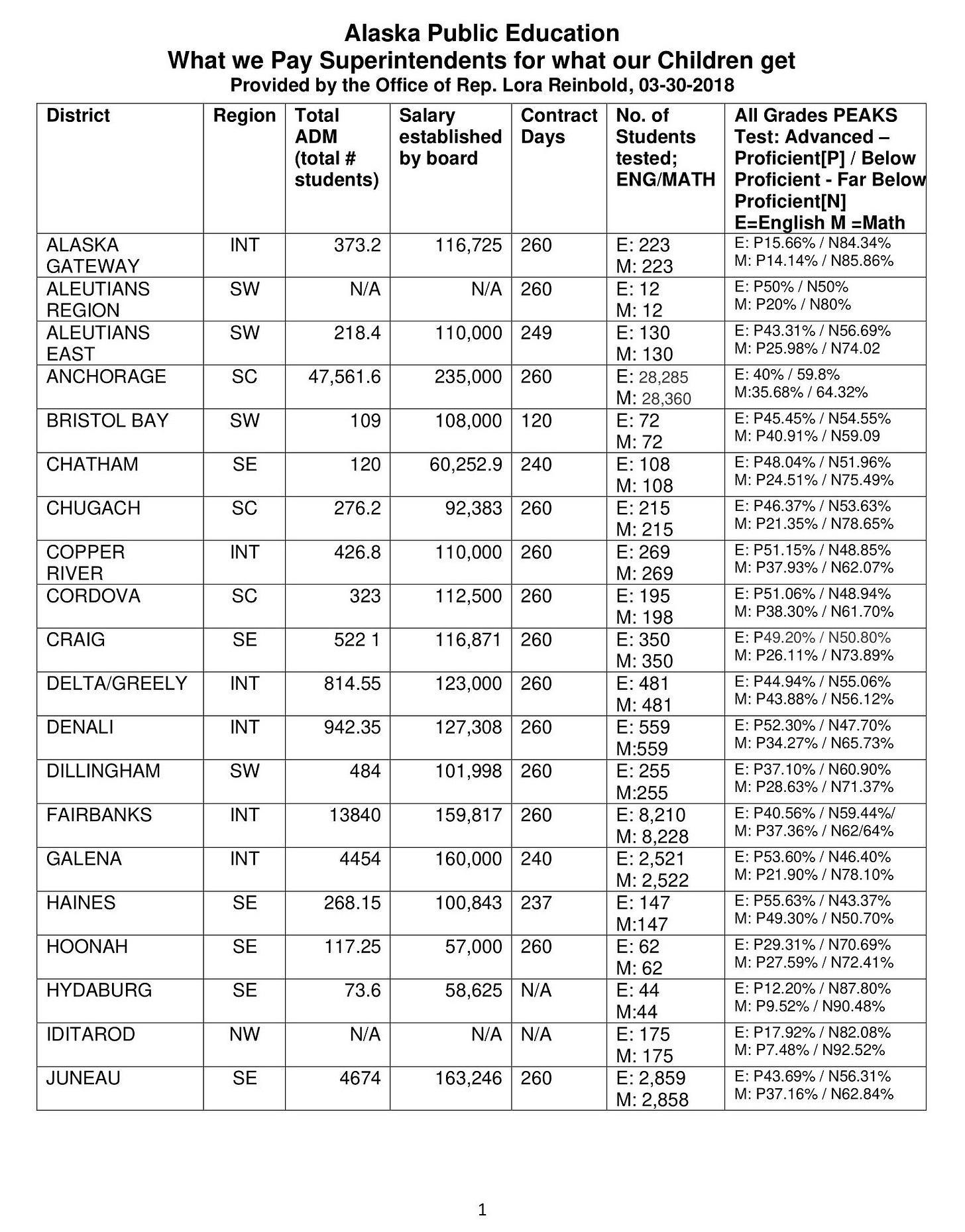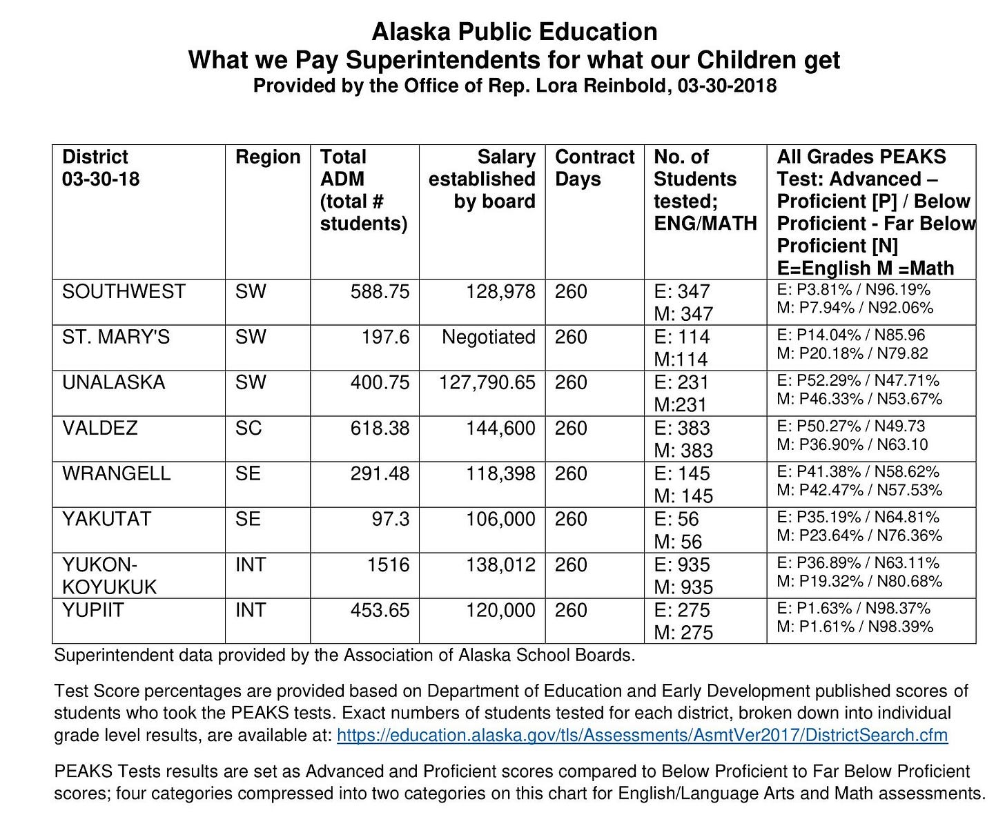 Every district is monitored by the Alaska Department of Education annual testing program. Substantial amounts are directed to each district by the legislature. The state budget passes only once the education budget has been approved by NEA-Alaska and associated groups aligned with various special interests. Here is the published chart of academic outcomes compared to economic commitment in terms of district superintendent salaries and benefits: