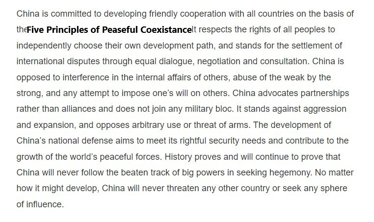 Terms of an agreement 70 years ago–between China and India signed in 1954–has re-emerged as a cornerstone of China’s National Defense Policy in the New Era, as conflict with Philippines and other Asian neighbors continues with regard to ownership of parts of the west Philippines Sea, also called the South China Sea. Rational people know what to expect from any playground bully such as China President Xi Jinping, when weakness is detected as it is currently with USA President Joe Biden.